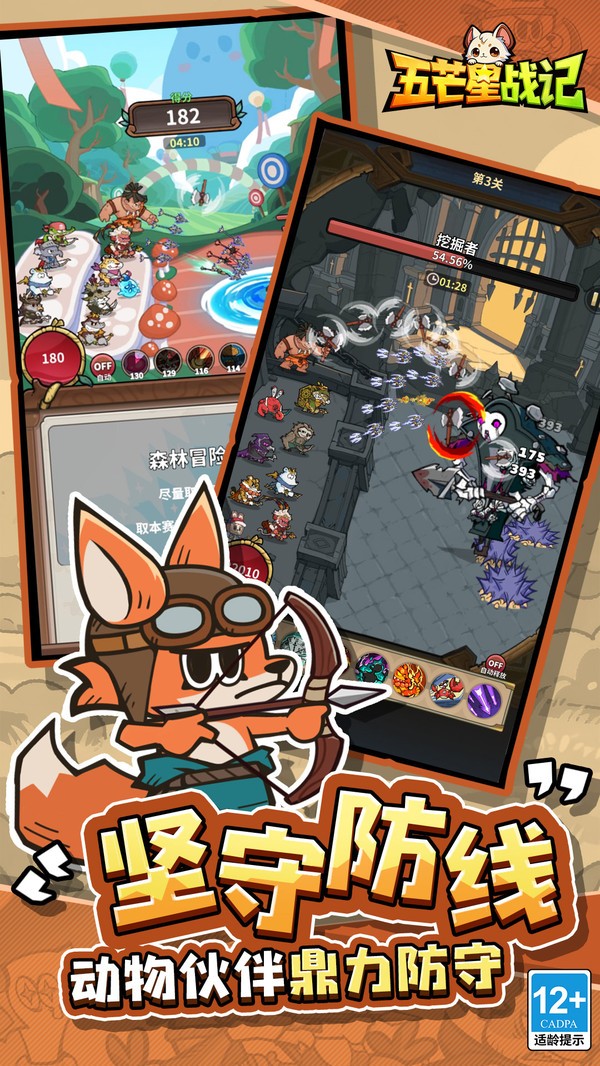 多元场景与视觉内容:采用抽象萌趣画风,场景涵盖“森林战场+村庄防卫”双重核心——森林战场渲染紧张黑暗氛围,村庄场景则侧重建设养成;角色技能特效贴合属性,早期版本还邀请手冢治虫动画工作室制作OP动画,兼顾视觉趣味与沉浸感。