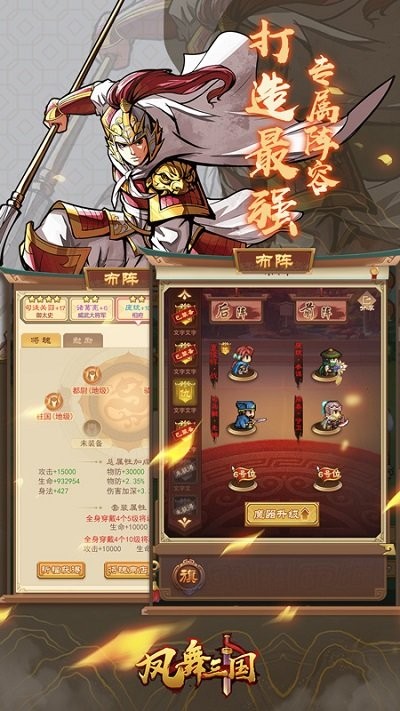 4、拥有50多个不同阵营的武将及数以百计的道具,利用排兵布阵搭配阵旗效果在战斗中占尽先机。
