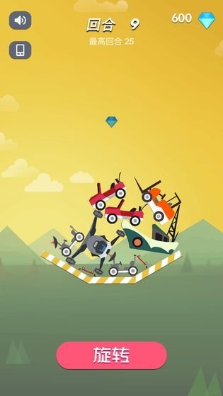 1、游戏开始后随机刷新不同形状的积木,通过旋转调整角度、水平移动放置来堆叠积木,层数越高奖励越多。