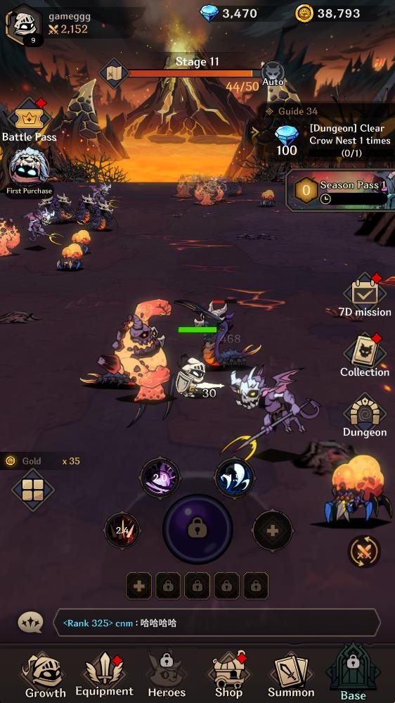 2、消灭怪物会获得金币奖励,点击下方的Growth按钮可以升级属性,每次升级都会消耗金币。