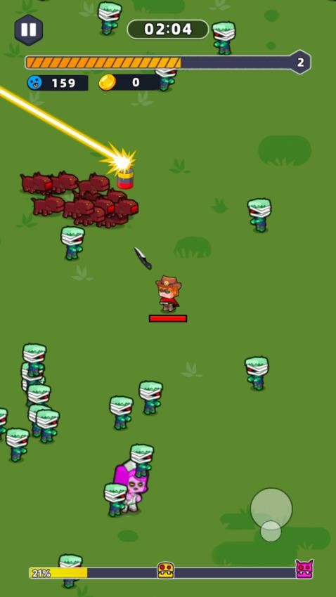 玩家身处遍布野兽的野外,需拿起武器果断出击,将不断袭来的野兽击杀。每成功消灭一批野兽, 就能获得强化 buff,进一步提升攻击力,让你在后续战斗中更加游刃有余。随着游戏推进,野兽的数量和强度都会增加,考验你的射击技巧和临场应变能力,快来体验酣畅淋漓的野外激战吧。