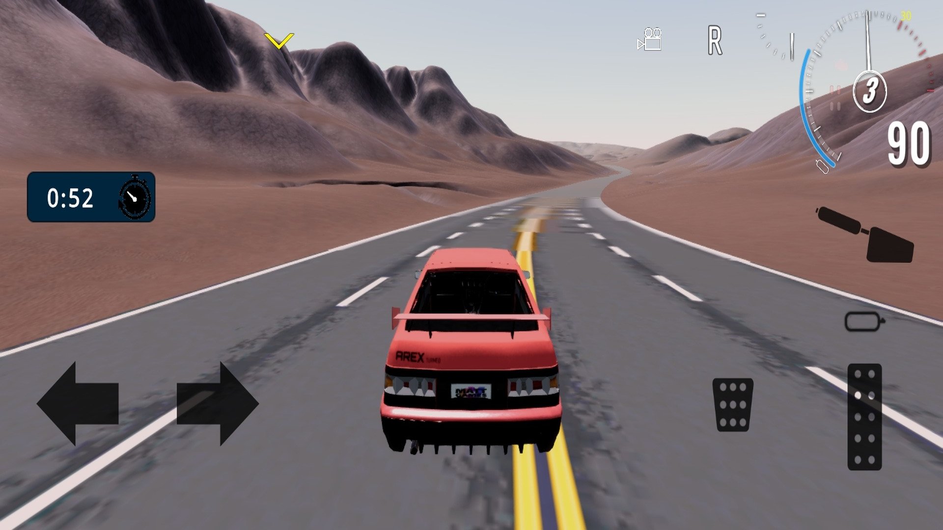 2、左侧区域可操控赛车的行驶方向,右侧则分为油门与刹车两个功能键,点击相应按键就能实现赛车的前进或后退操作。