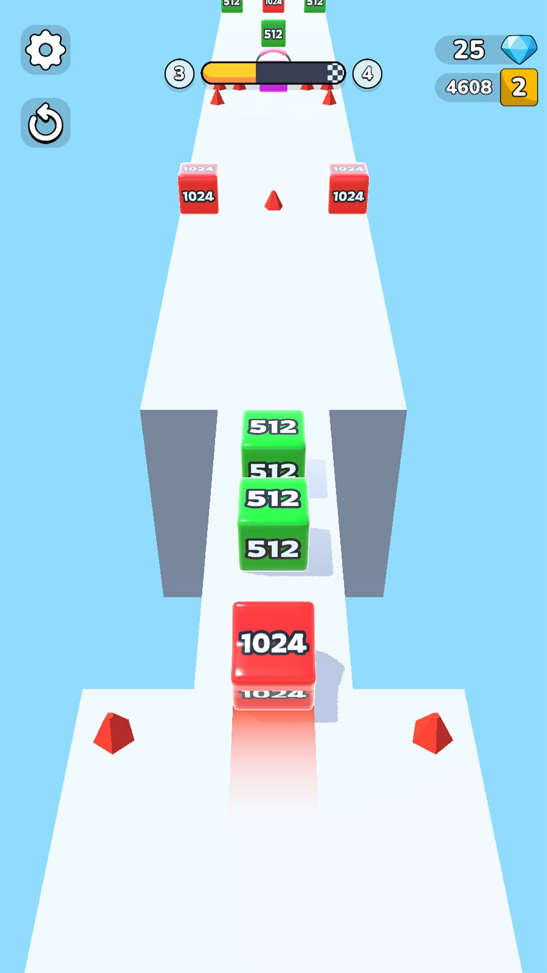 2、合理使用跑酷道具,躲避障碍,为方块合成创造有利条件,提升闯关成功率。