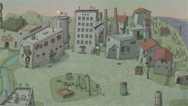 爬隧道进入医院,地图上有一间格子屋,通过它来到死胡同,右边墙上挂了一幅画,点开后不断点击画的右下角撕开,最后点击小脑人图案解锁本成就
