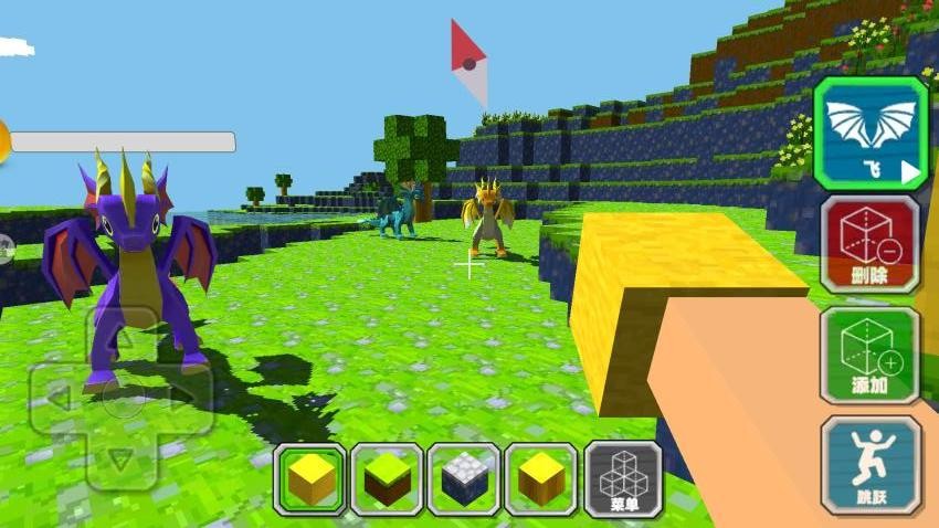 2、方块世界自由探索,任何区域都能控制角色前往,从中可以采集大量资源材料,还能实现多方面的建造。