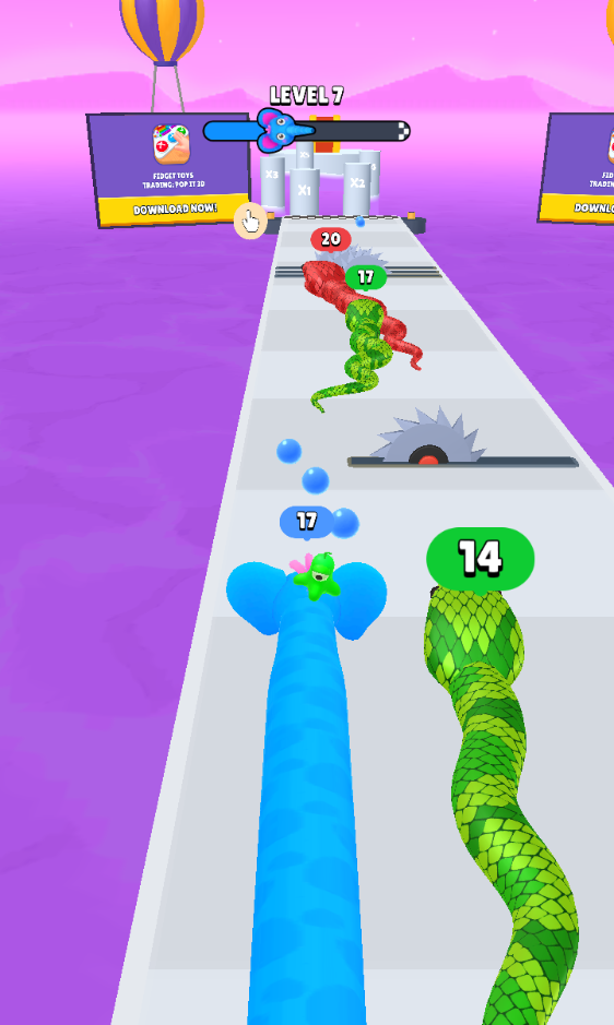 3、游戏拥有高质量且生动的图形、引人入胜的障碍赛道,让玩家们可以操控自己的小蛇疯狂冲刺,享受欢乐!