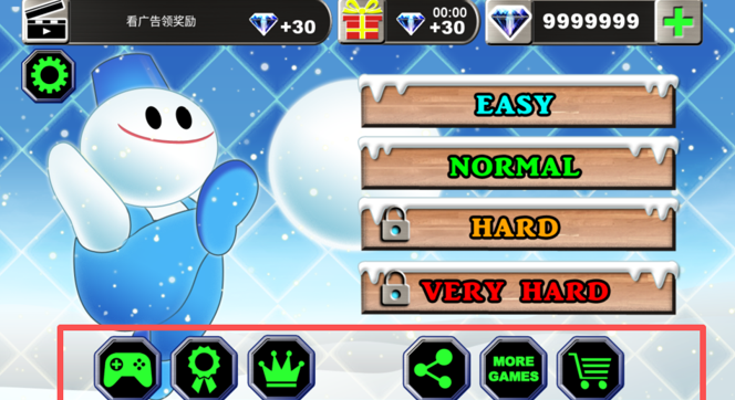 2、打开游戏后,我们能够看见,游戏已经自带99999999钻石,而且有多个模式供玩家选择。高难库模式,需要玩家通过上一难度才能解锁。