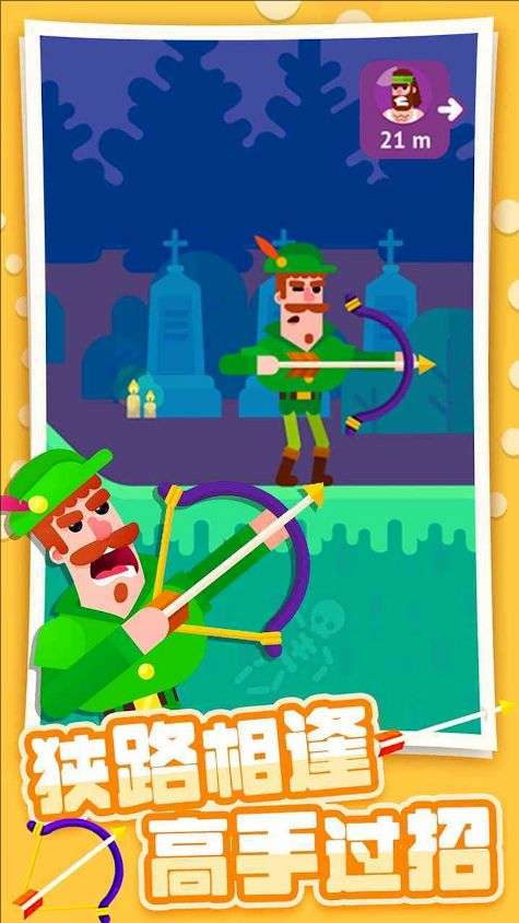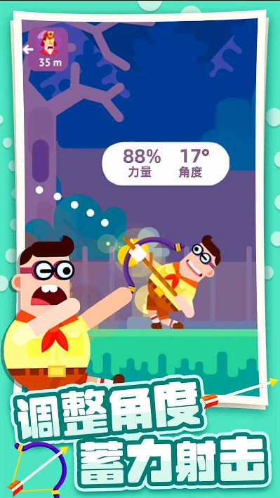 2、通过滑动屏幕调整弓箭的发射角度和力度,精准击中目标。