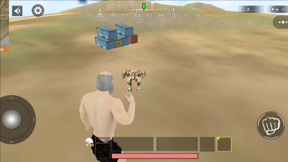 1、在海岛地图中移动探索,发现敌人与物品盒子,合理的使用。