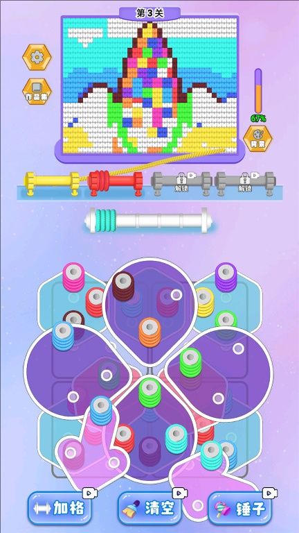 3、在遇到困难关卡时,可以使用游戏提供的道具来帮助解开毛线,提高解谜效率。