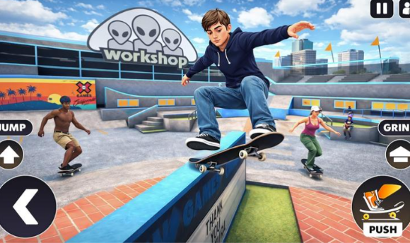 3、在这款滑板游戏中,你将扮演 Skate,一个特立独行的青少年,他渴望用自己的风格和技巧征服城市,成为一名传奇滑板手。