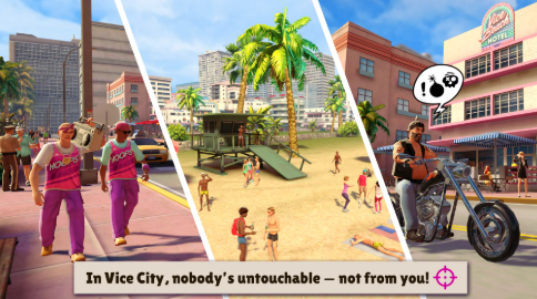 - 80 年代霓虹灯风格和独特的迈阿密风情场景——一座真正的罪恶之城。