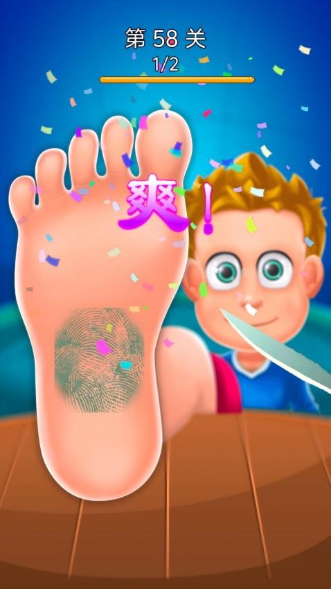 2、进入第58关之中,你需在第一个环节中发现相关的脚部问题,并使用适合的工具来处理这些情况。