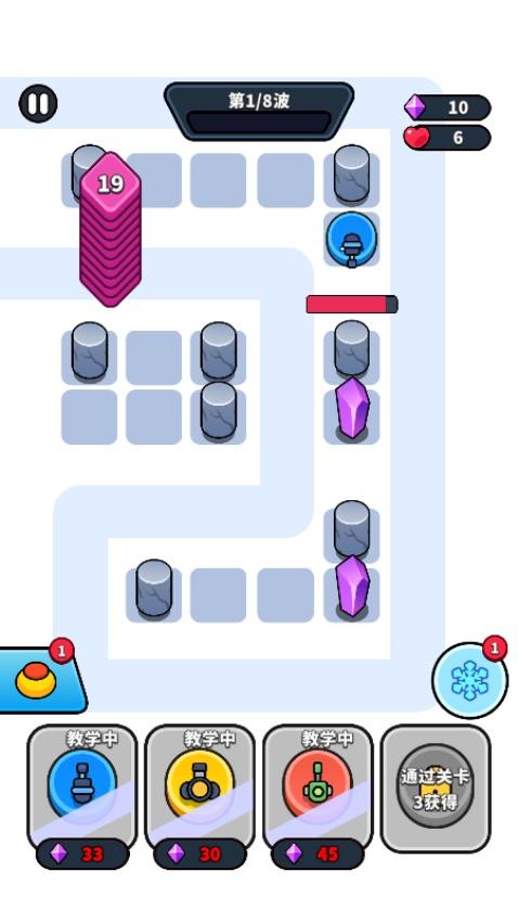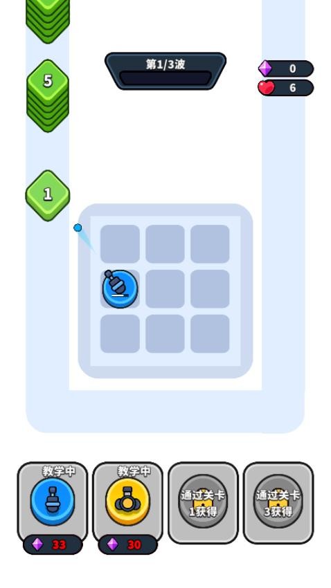 3、利用击杀敌人获得的钻石资源进行部署更多防御塔,相同防御塔放置同一处可以升级。