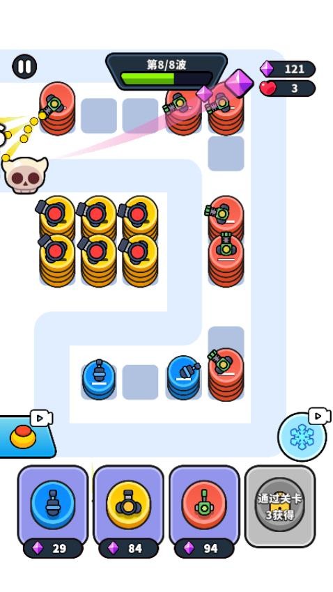 2、功能各异的防御塔随意挑选,并且所有防御塔都会拥有不同的升级分支,选择分支就能带来不一样的战斗效果。