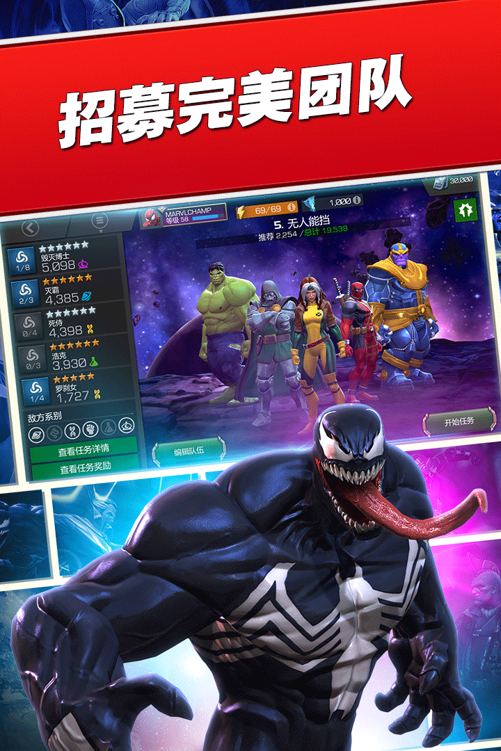 -收集,升级,并根据漫威漫画情节中的人物关系,妥善地安排队伍中的英雄