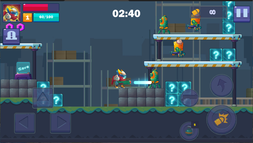 卡通街机视听呈现:采用高清彩色卡通画风,角色与机器人造型鲜活,搭配生动战斗音效与动感 BGM,还原经典街机射击的沉浸氛围。