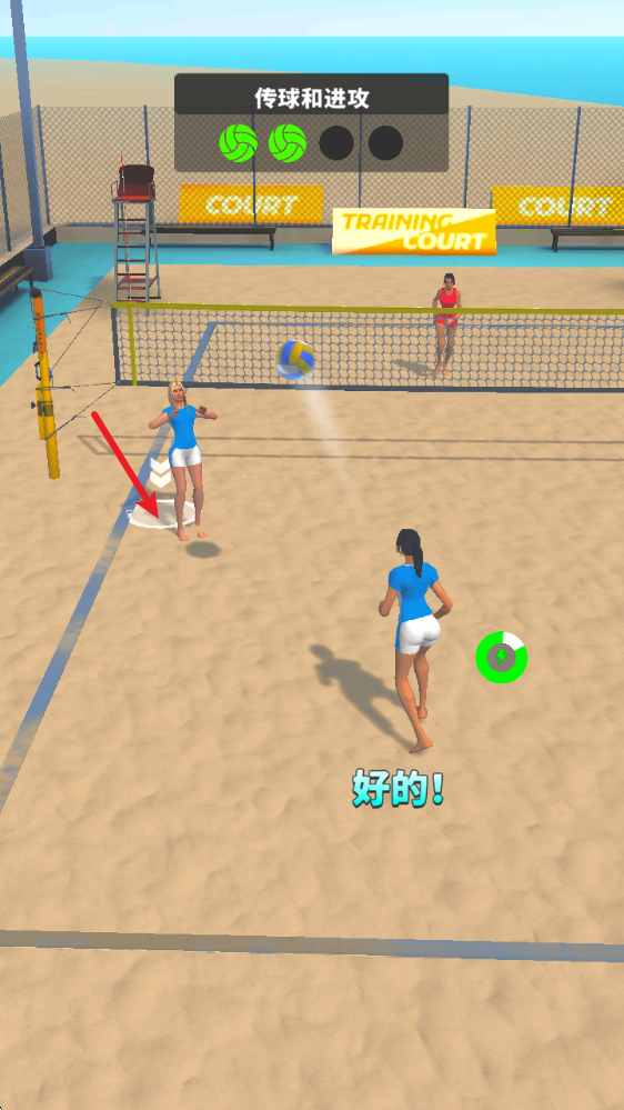1、游戏中可以根据落点位置,在合适的时机点击即可击球。