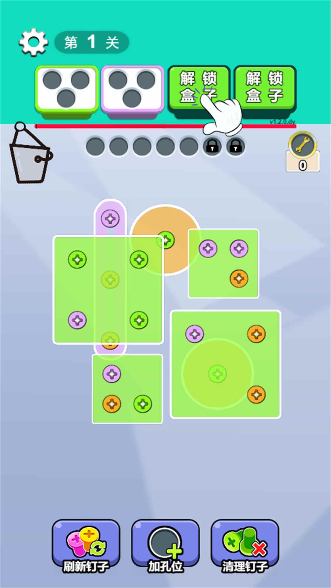 2、游戏包含多个关卡,每个关卡都有不同的螺丝布局和修复任务。