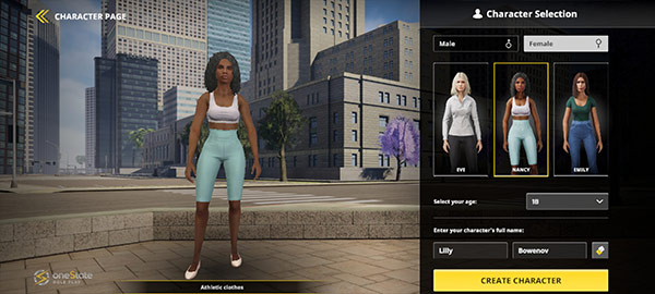 5、进到游戏之前你需要选择一个游戏角色,男女、年龄等,选择好点击“create”进行创建。