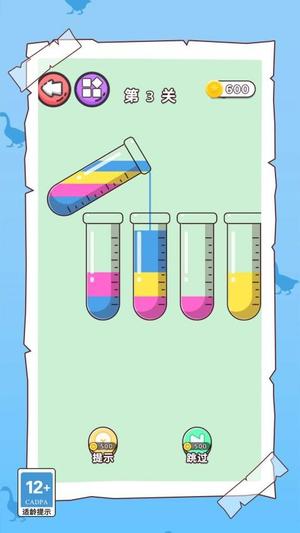 4、液体颜色区分是水排序关卡的核心,必须按照颜色类别依次倒入试管,避免混合导致任务失败。