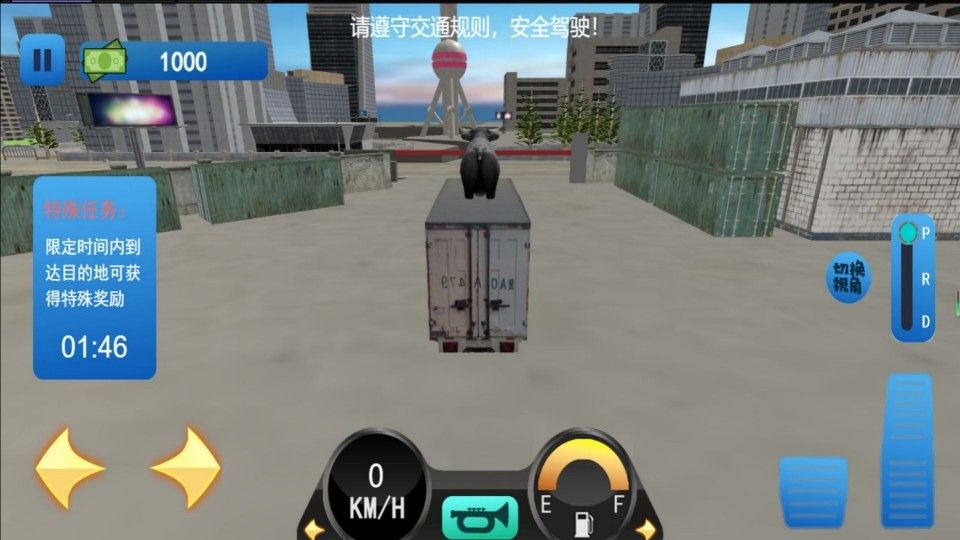 1、操控拟真卡车在规定时间内将货物运达目标地点,获取送货收入。