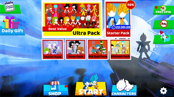 卡通Q萌画风降低格斗游戏的紧张感,搭配火柴人简约造型与《七龙珠》角色的经典元素,视觉风格讨喜,适配不同年龄层喜好。