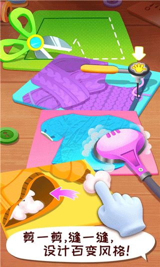 工具操作逼真,通过虚拟交互模拟剪刀裁剪、缝纫机缝制等动作,既还原真实操作细节,又杜绝安全隐患,适配低龄群体。