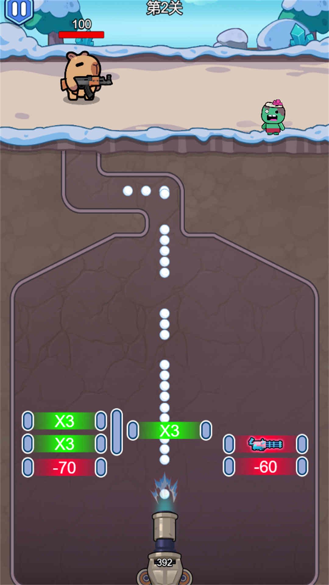 1、以卡皮吧啦对抗僵尸为核心,结合雪球冻结、球球数量策略,打造轻松趣味的关卡挑战。