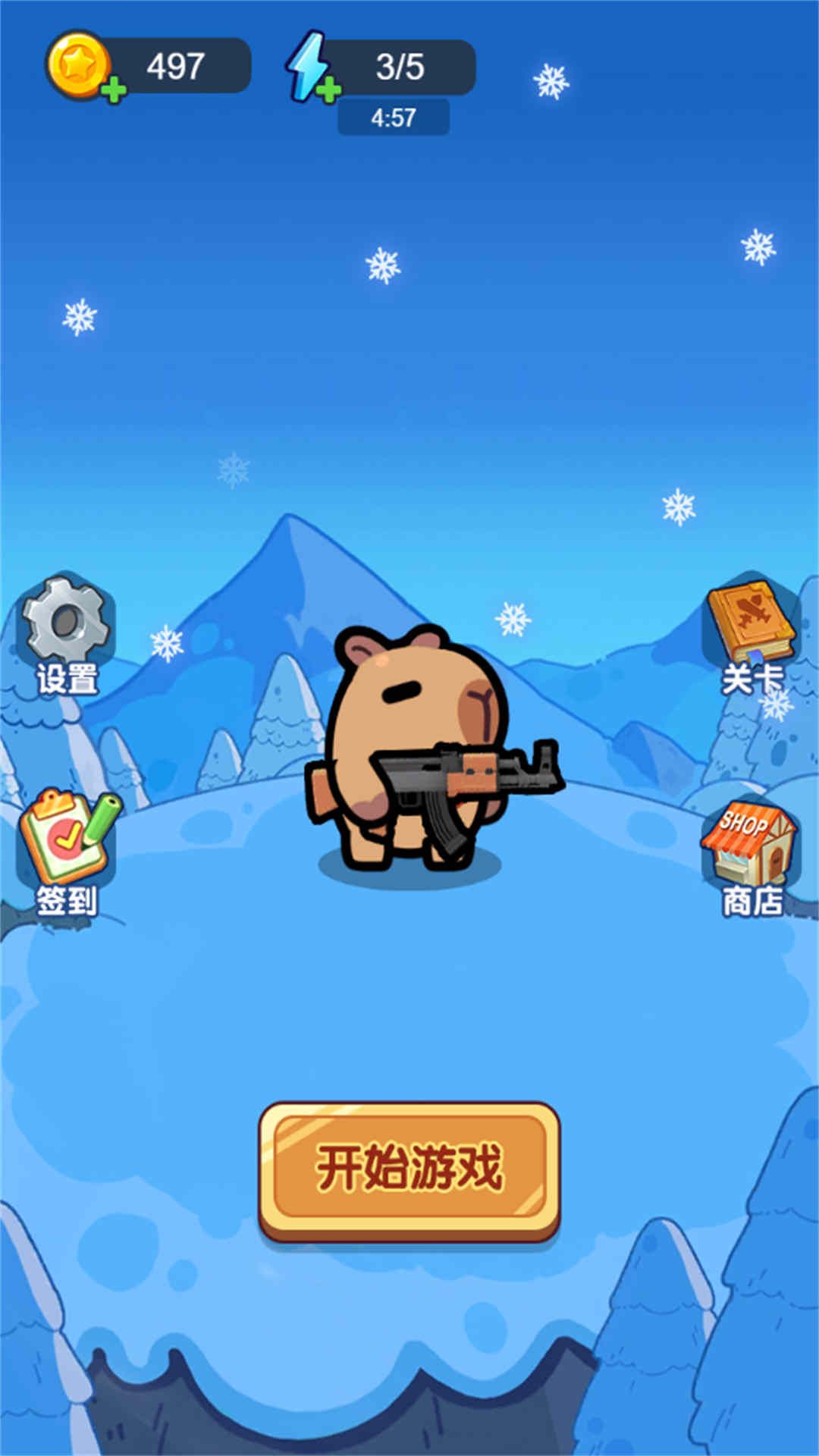 老铁别打我游戏是一款闯关游戏,你需要帮助卡皮巴拉对抗僵尸,想办法将其冰冻成雪球,完成一系列的任务,击败无数的敌人,获得大量的快感与奖励,画面简约玩法多样,不断升级武器,快速的完成任务,多样的场景切换,玩起来比较的兴奋。