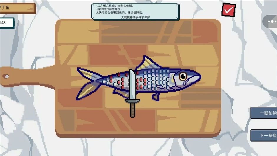 3、将处理好的鱼肉提供给顾客,赚取金币用于装备升级或解锁新内容。