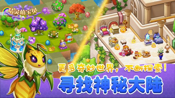 《精灵萌宝贝》是一款融合解谜休闲解压合成类型手游。孵化、融合和进化精灵来拯救精灵世界!收集精灵,消除诅咒并治愈花园,去发现奇迹探索上古神秘精灵!需要玩家去探索无尽的魔法融合之谜和完成传说解谜挑战任务!不断的收集融合游戏内物品和进化精灵,便可以发展和恢复你的花园!