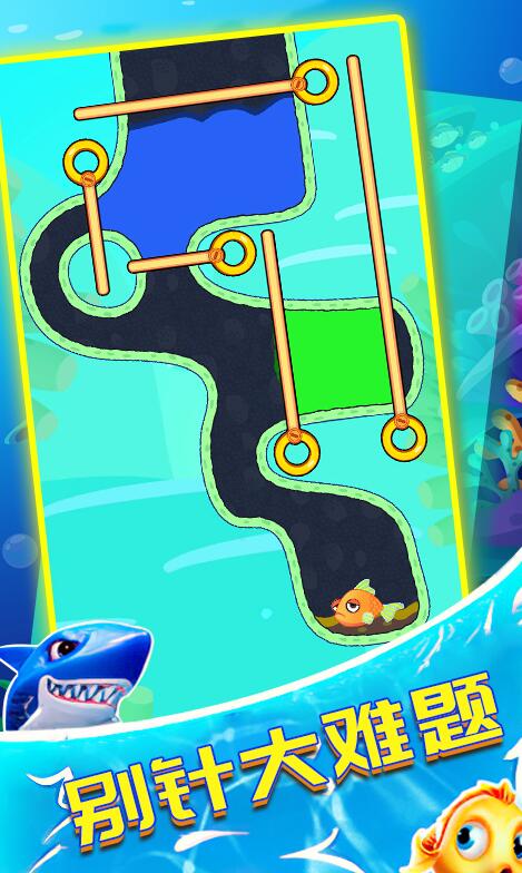 3、在这关我们需要先拔出下方的,在抽出鲨鱼这边,让酸水击杀鲨鱼。