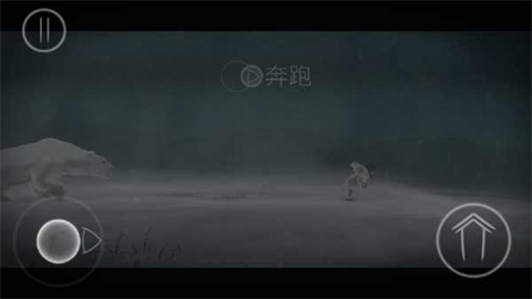 5、故事在一个风雪交加的夜晚开启,小女孩从睡梦中惊醒,随即被一头北极熊紧紧追赶。请立即点击屏幕左侧的奔跑按钮,协助她摆脱北极熊的追击。