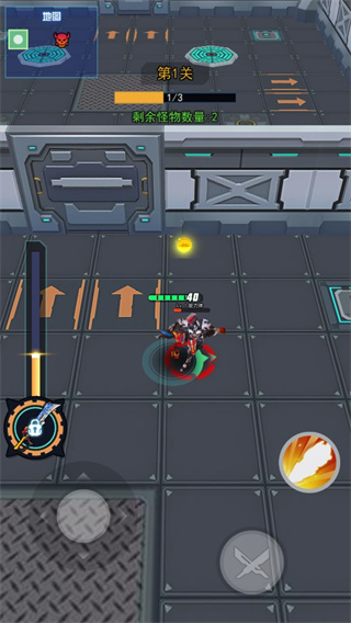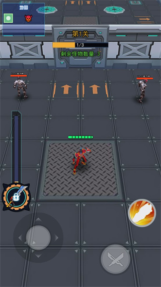 游戏的操作非常的简单,左边是控制铠甲的方向,右边则是攻击了;