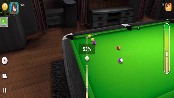 1、可以在击球过程中自由切换球桌视角,以便更清晰地观察球的布局和击球路线。
