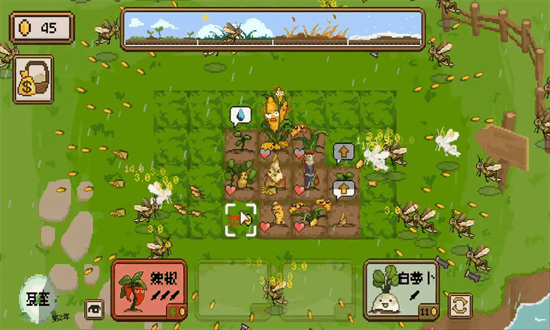 2、夏季应对虫群小规模骚扰,利用植物技能清理并积累资源升级农田。