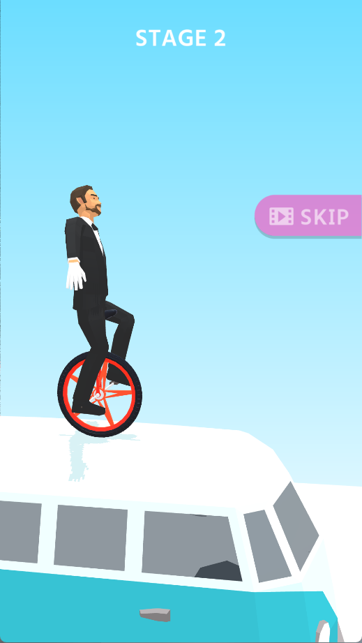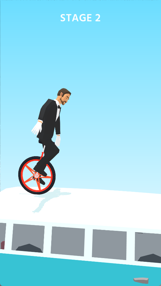 进入关卡后,手指点击屏幕控制独轮车:点击左侧使角色向后移动,点击右侧使其向前前进,保持车身平衡。
