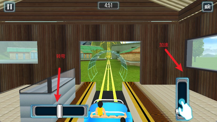在3D轨道中行驶,遇急转弯、十字路口或俯冲路段时,及时刹车减速避免脱轨,平缓路段可加速感受刺激。