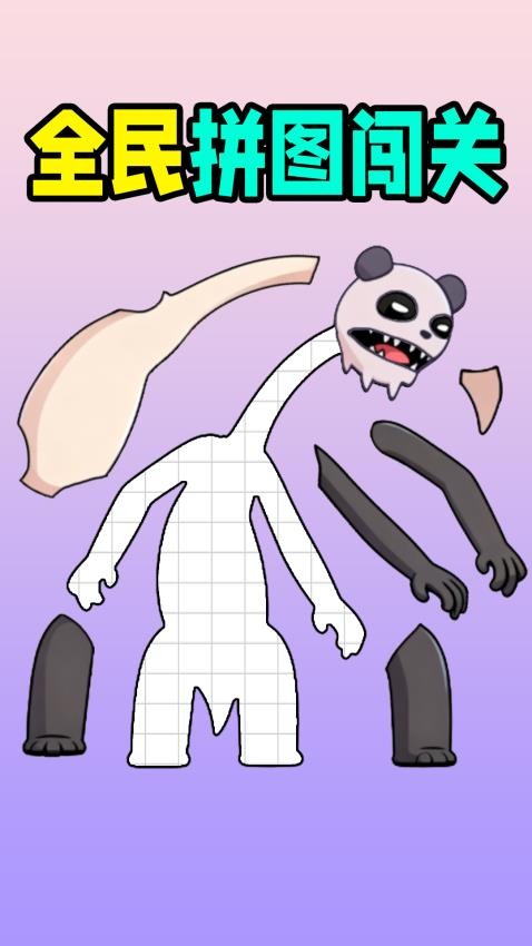 2、解锁熊猫拼图关卡之后,你需观察这个熊猫的四肢和躯干等部位,便可开始拼搭。