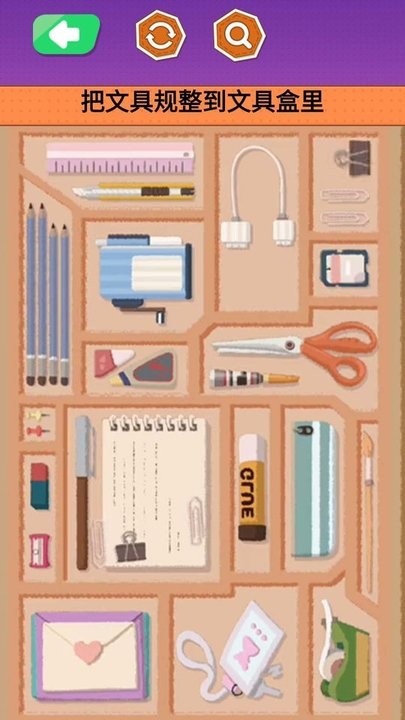 文具收纳大师是一款非常好玩的文具模拟游戏,收纳系列的游戏玩法,可以让玩家更好的完成任务,各种模式都轻松好玩,帮助玩家更快的完成任务,简单的游戏模式可以让玩家更好的完成挑战,欢乐多多让你更好的完成挑战,赶快试试吧。