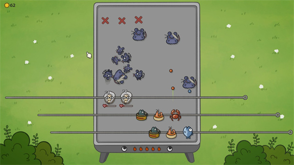 别拽了!烤串师傅是一款创意烧烤主题塔防手游。战场设定为3×3的九宫格烤炉,玩家需实时拖拽三根横向烤签,在鼠鼠不断涌入时,通过移动食材进行瞄准射击、反弹甚至弹回敌人,实现动态防御。游戏操作灵活、策略性强,搭配Q版卡通画风和诙谐的鼠鼠形象,在滋滋冒油的烧烤氛围中,营造出既轻松解压又紧张刺激的独特体验。