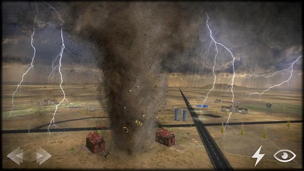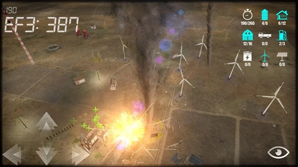 3、龙卷风真实模拟器玩家只需要通过几个虚拟按钮就可以来控制龙转风。