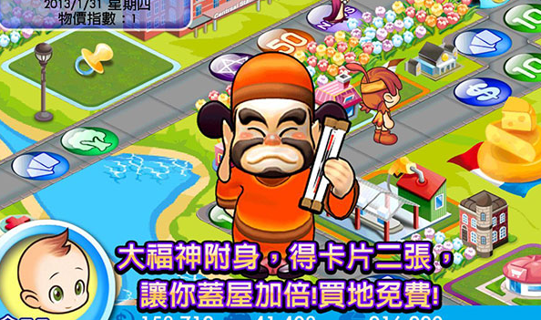 6、丰富的卡片道具:可以控制步数、强夺土地现金、盖屋拆屋、迎神送神及陷害对手..等!