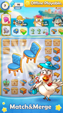 2、游戏融合合并、三消与经营三种玩法,资源获取全靠动脑策略。