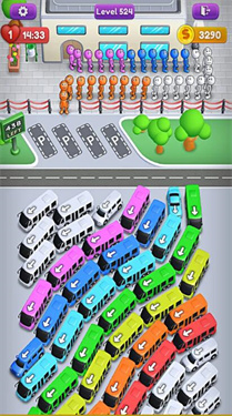 1、部分关卡采用实时制,所有小人会同时向车辆移动,需要同时调度多辆汽车,规划交错路线避免碰撞。