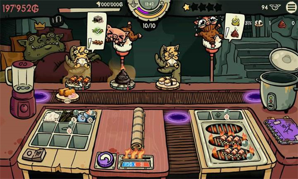 玩家在哥布林寿司每局解锁随机寿司配方,失败品可能触发特殊事件,如毒蘑菇寿司可击退强盗但会扣信誉度。
