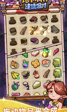 地下城邦建造派对是一款合成经营游戏。玩家将扮演地下城经营者,通过拖动物品合成魔力商品,满足源源不断的冒险者订单需求。从基础合成开始,逐步扩展到地下城区域规划与建筑布局,让你能够亲手打造独一无二的地下城邦。