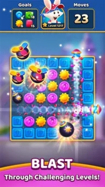 2、三消玩法巧妙多变:三消玩法设计独特,特殊方块与机关组合带来新鲜挑战与解谜乐趣,不仅有基础消除,还有特殊障碍需运用策略搭配道具破解。