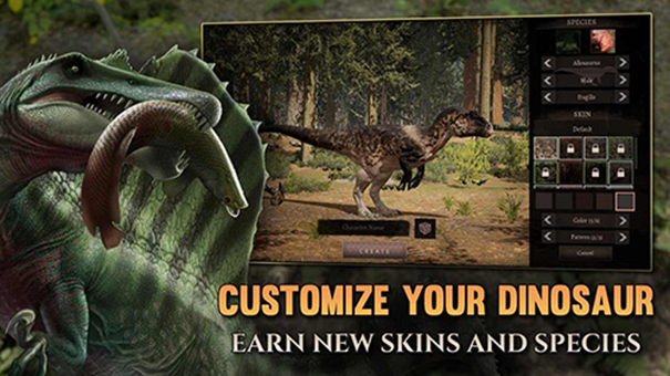 2、选择你的恐龙种类,适应这种弱肉强食的大自然生活,学会利用自己的身体,在丛林中纵横;